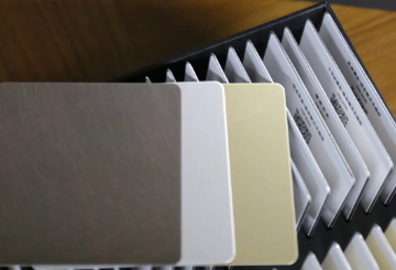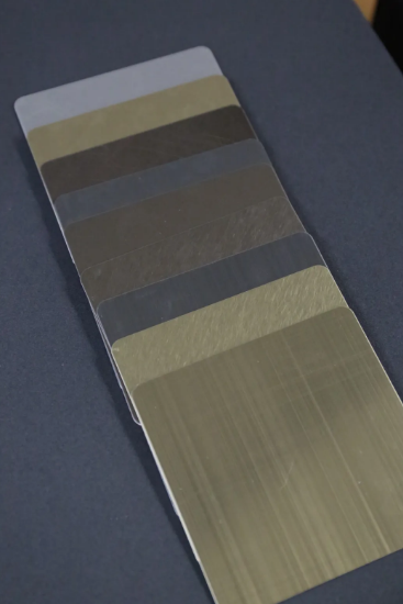 每块色卡按标准尺寸制作,设计师可直接手持比对,直观感受颜色、纹理与光泽,告别依赖二维图片或抽象描述的选材方式,减少想象误差,快速匹配设计方案中的金属元素。